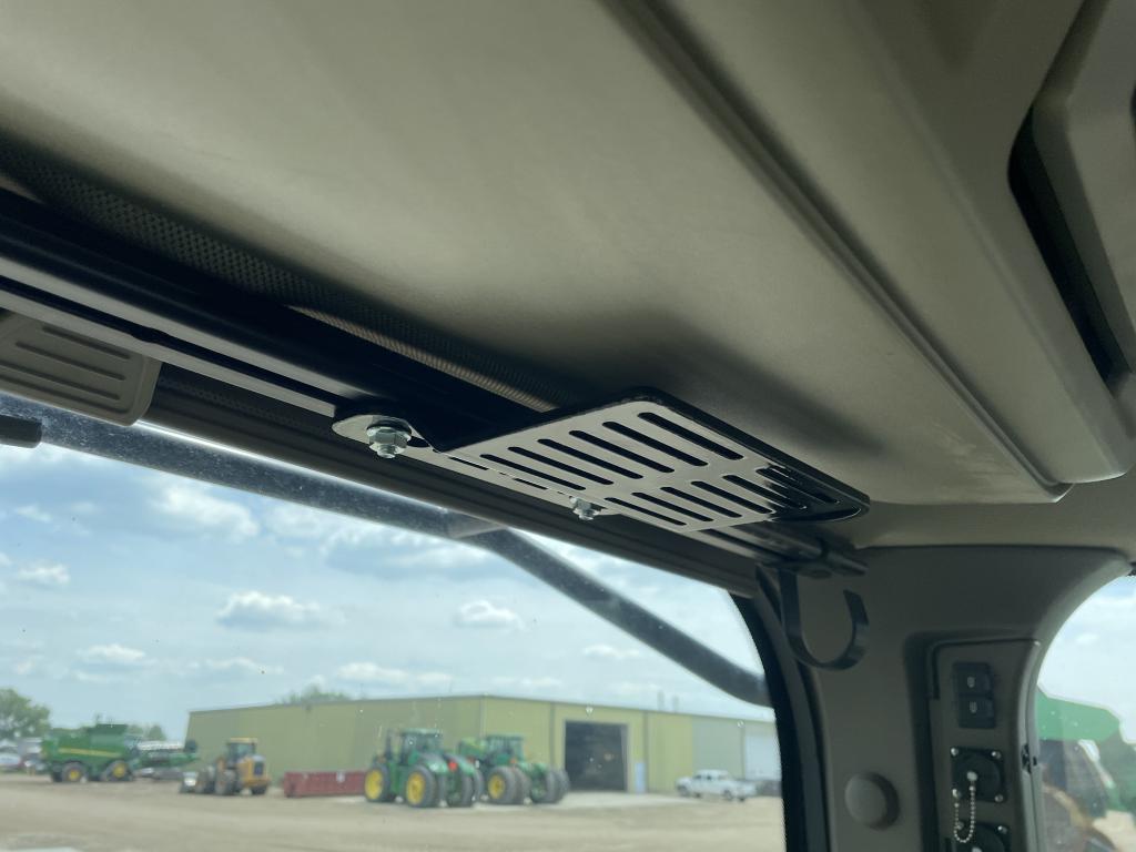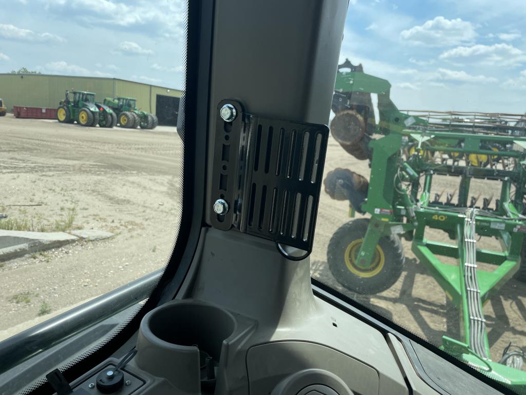 The LANMBJD888 is a CB radio bracket for 7R, 8R & 9R John Deere® tractors. This bracket will fit the bolt hole pattern on the rear right-hand cab corner post for mounting. It can also be mounted to the monitor rail above the right-hand window in newer tractors that have that option.