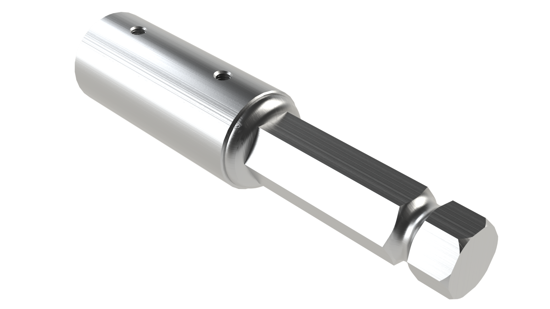 Female 1-1/8″ Hex Coupler x Male 1-1/4″ Hex Shaft x 9-1/4″ Long (Extended Length) – Stub Shaft Adapter with Set Screws