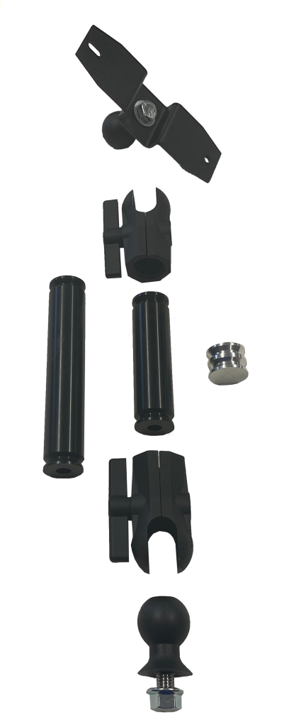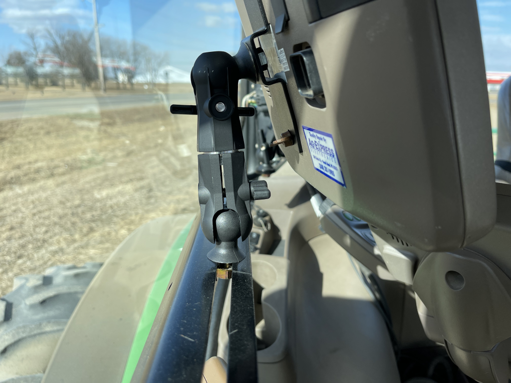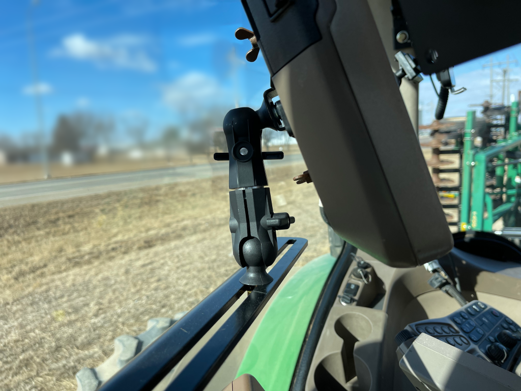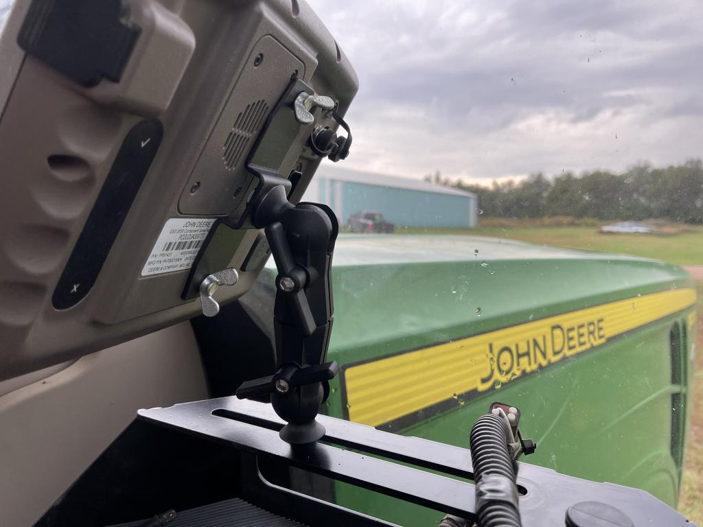 The LANBTB33 kit comes complete with the LANBTBXA7012 2-hole monitor mount, two of the LANBTBXB1012 knuckles, all three extension arms (LANBTBXB1102, LANBTBXB1092, & LANBTBXB1122), and one LANBTBXC0162 M10 stud large ball mount. The kit can be used to mount most devices equipped with 120mm hole spacing, including the John Deere® Gen 2 and Gen 3 monitors.