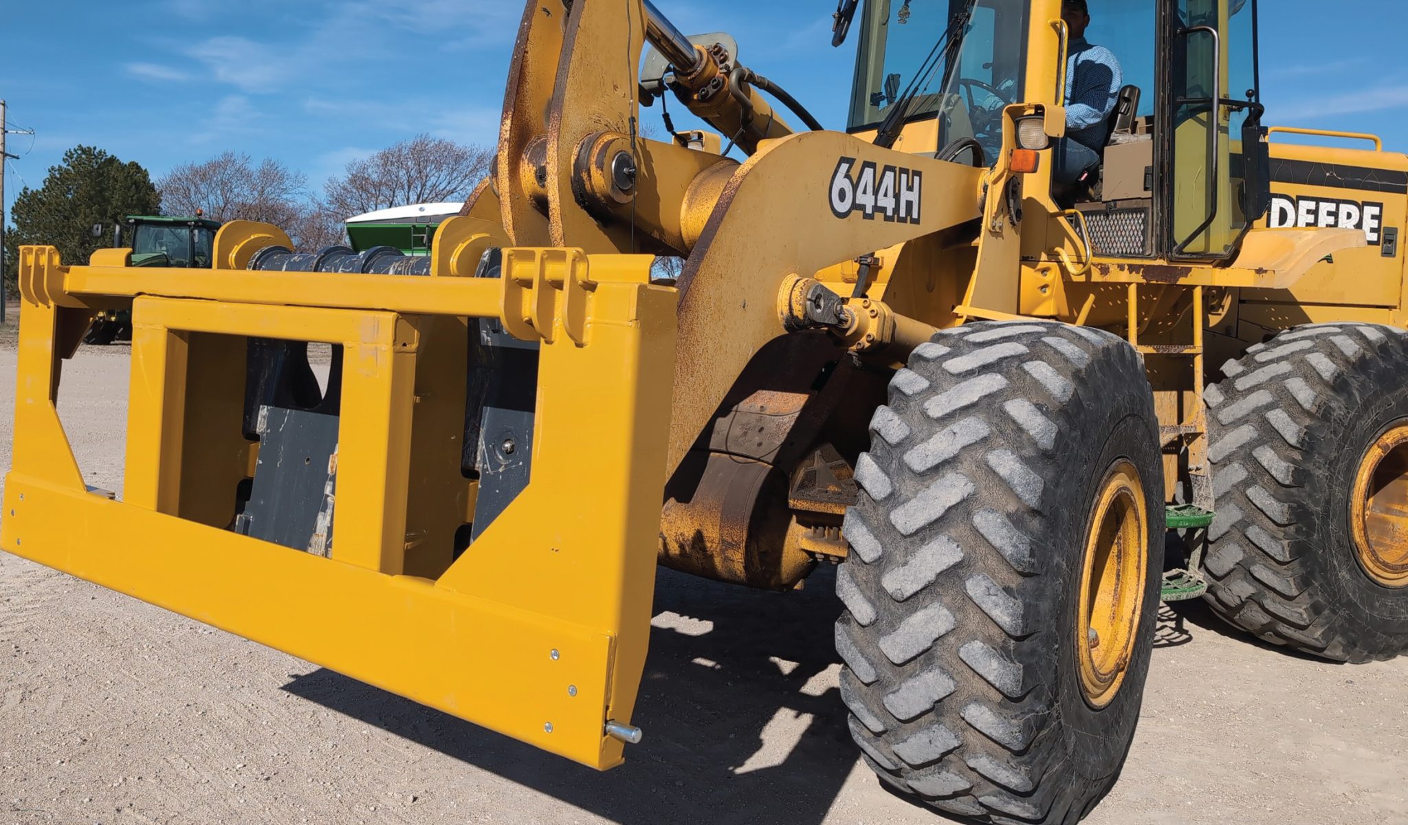 The Bish John Deere Configuration is designed to adapt Bish Implement Movers for compatibility with John Deere equipment. This configuration ensures proper fitment and secure integration when lifting and moving combine headers and implements using wheel loaders, telehandlers, forklifts, tractors, or other supported machines in the Bish Implement Mover system.