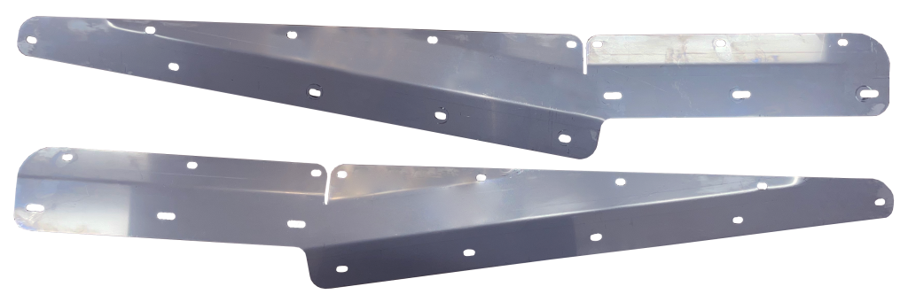 The LANPSP820K is a stainless steel corn snout protector kit for the snouts of John Deere® C Series, 20 & 22 inch row, corn heads. This kit prevents or covers up the wear marks and thin areas in your corn head snouts. Each kit contains one left and one right protector plate, as well as all stainless steel attaching hardware. There are no cover plates available for the outside of the outside snouts. Plates do not fit on the inside of the two end snouts. For end rows, order the LANPSP820EK.