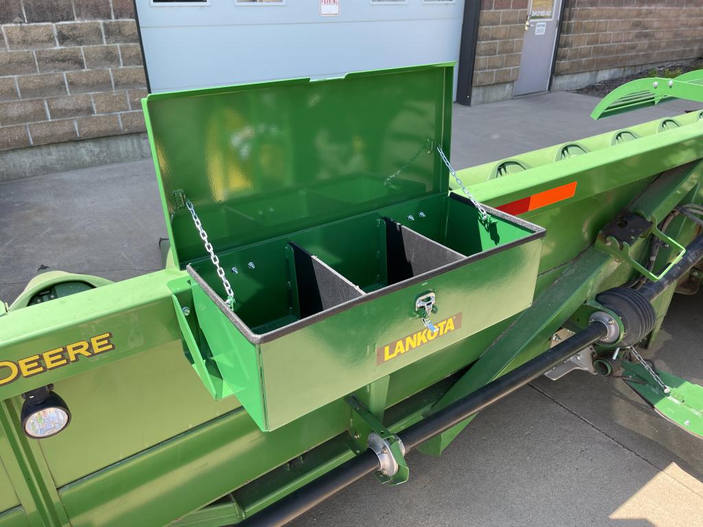 This toolbox can store parts, tools, and most anything else you need to stay productive in the field during harvest time. Included in the toolbox are two removable sectional dividers. The dividers can be installed to keep parts and tools organized or remove them for storing larger items. This lockable toolbox keeps your expensive tools and parts secure and easily accessible while minimizing clutter in the cab.
